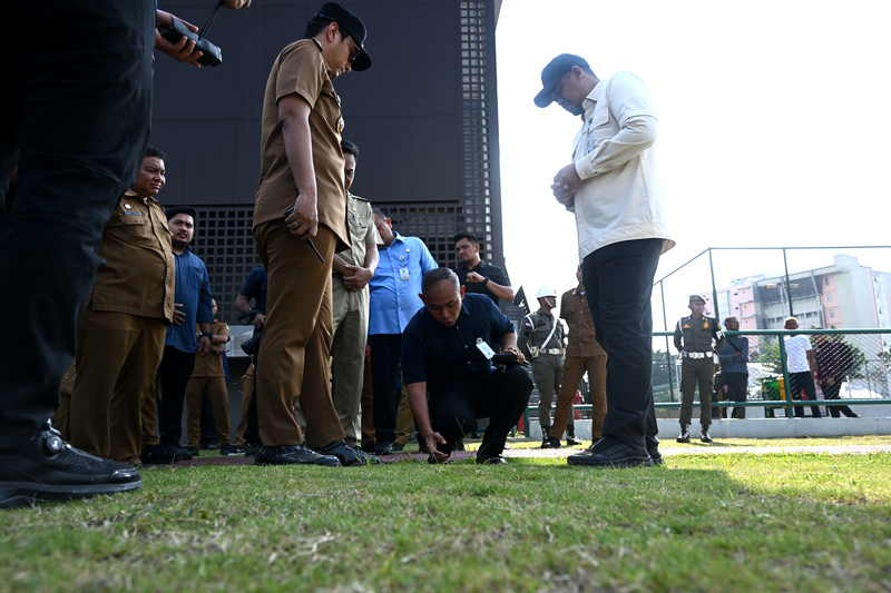 MEDAN, 31/3 - Gubernur Sumatera Utara (Sumut) Muhammad Bobby Afif Nasution meninjau langsung Lapangan Kebun Bunga di Jalan Candi Borobudur, Medan, Selasa (31/3/2026). Peninjauan ini dilakukan untuk memastikan fasilitas olahraga kebanggaan warga Medan tersebut memenuhi standar kualitas dan layak digunakan.